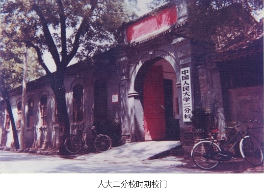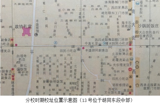 西城区西四丰盛胡同13号,这里曾是北京市第一六二中学(以下简称“162中学”)的校址。1978年年底,北京市创办大学分校,将中国人民大学第二分校(以下简称“人大二分校”)校址选于此。1984年,在此重建新校舍,人大二分校搬迁至在海淀区红联东村租借的校舍临时办学。1986年迁回时,已更名为北京联合大学文法学院。