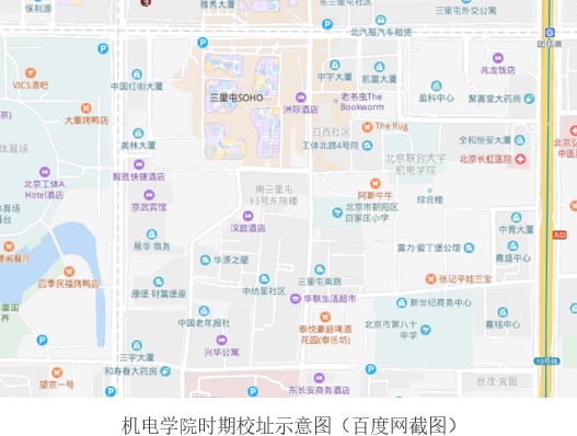 白家庄旧时为自然村,因白姓得名。五十年代于白家庄及附近盖住宅区。位于白家庄以北的称白家庄北里,以东的成白家庄东里,以西的称白家庄西里。白家庄西里和北里同属三里屯街道,西里和北里的划分曾变更过几次,白家庄北里曾东起北三环北路,西至南三里屯路,北始工人体育场北路,南抵白家庄路。白家庄北里之东是白家庄东里,中隔东三环北路,之南是白家庄西里,中隔白家庄路,现今原归白家庄北里管辖的地方归到了白家庄西里。1952年,一所占地300亩(约20万平方米)的北京市机电类中专学校——北京工业学校落户于当时的白家庄北里北部(时称三里屯校区)。1969年,北京市机械工业管理局(以下简称“机械局”)收购北京工业学校,将其与精密机械研究所合并,成立北京第六机床厂。1978年,北京第六机床厂与北京市机械研究所、北京市机械工业管理局中心计量站合并,组建北京市机电研究院(以下简称“市机电研究院”)。同年,抽调部分原北京工业学校教职工,筹建工大一分校。原北京工业学校校址被后来的工大一分校、北京机电研究院和兆龙饭店等单位使用。