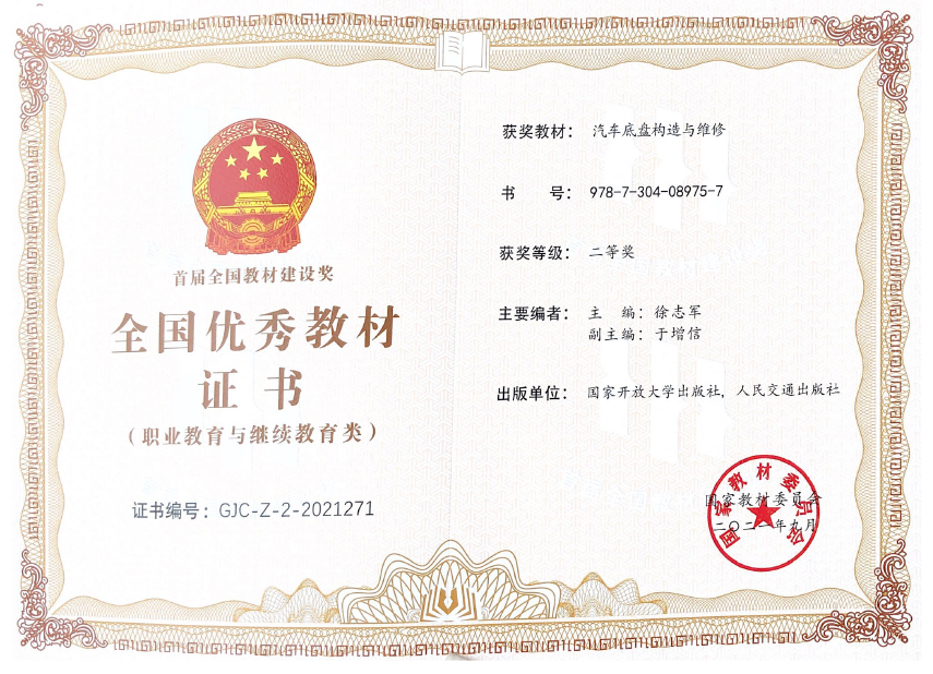 全国优秀教材奖证书(职业与继续教育类)