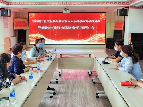 与社区开展共建,服务市民终身学习。与全国社区党建标杆芍药居二社区党委“红芍社”开展共建,组织召开党建融合服务市民终身学习研讨会,并向社区党委赠送了包括人文北京、社区法律、社区治理、茶艺、剪纸等9门校本精品课程光盘;“七一”期间还深入走访慰问抗疫一线的社区工作者。深入开展学校周边社区市民终身学习需求调研,形成调研报告。连续五年参加北京市民终身学习周活动,坚持为社区市民开办 “精品数字课程到社区”“好书一起读”“摄影技巧与作品赏析专业摄影”“法律专场”讲座等系列活动,充分利用学校优质教育资源服务周边社区,提升学校影响力。 2021年获“北京市第十七届全民终身学习活动周成功组织奖”。