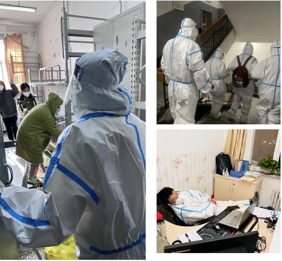 当前,北京市疫情仍处于较快发展期。学校多个校区相继涉疫,辅导员老师们第一时间奋战校园疫情防控第一线,化身为大白、小蓝,主动 “留校值守”,入住学生公寓,舍小家为大家,坚持24小时守护不断线,全身心投入、全天候陪伴、全方位育人,用责任与担当筑牢学校疫情防控的“最前线”,用心用情用爱守护学生的生命健康,传递温暖与力量,用自己的实际行动展现了联大的育人温度。