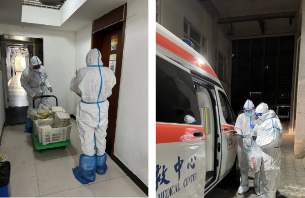 12月2日晚,7号宿舍楼发现一名研究生核酸结果异常,马克思主义学院党委副书记冯丽霞作为楼长第一时间入楼开展工作,调动层长宿舍长管理网络迅速配合学校做好应急相关工作。7号楼是北四环校区唯一在校外的宿舍,根据学校要求最近进行了闭环管理,冯老师充分发挥学生党员和入党积极分子作用,组织了志愿者突击队,完成每日的送餐任务,分发口罩等,时刻关注学生的生活学习需求和思想动态,作为楼长的她战斗在抗疫第一线。