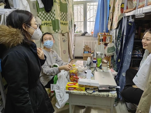 12月1日,接疾控部门通知,北四环校区南院1名人员核酸检测结果异常,校区各学院辅导员第一时间进驻校园,立即展开数据统计、保障物资运送、做好学生心理疏导、逐一了解学生诉求,齐心协力守护在校师生安全。
