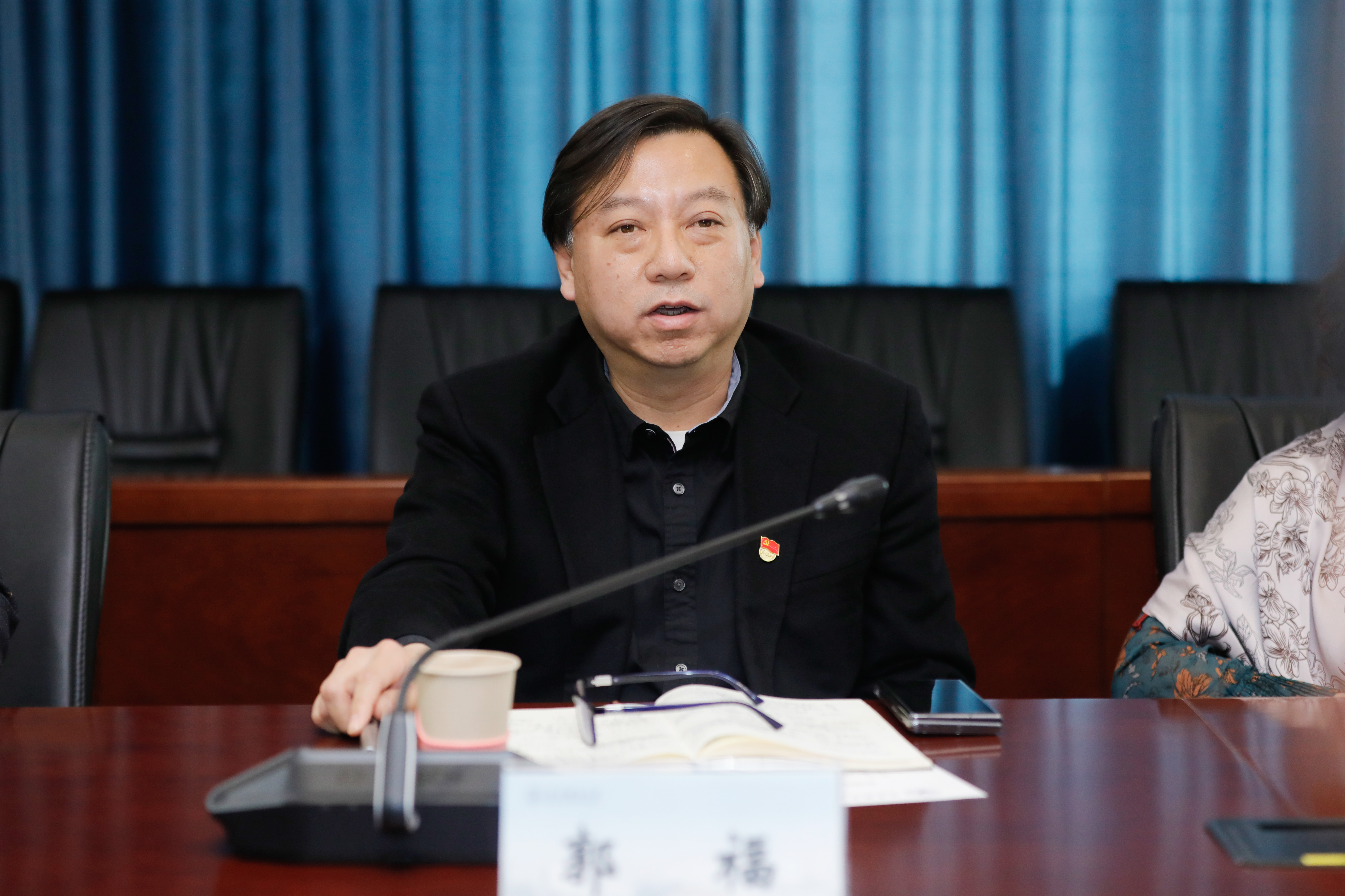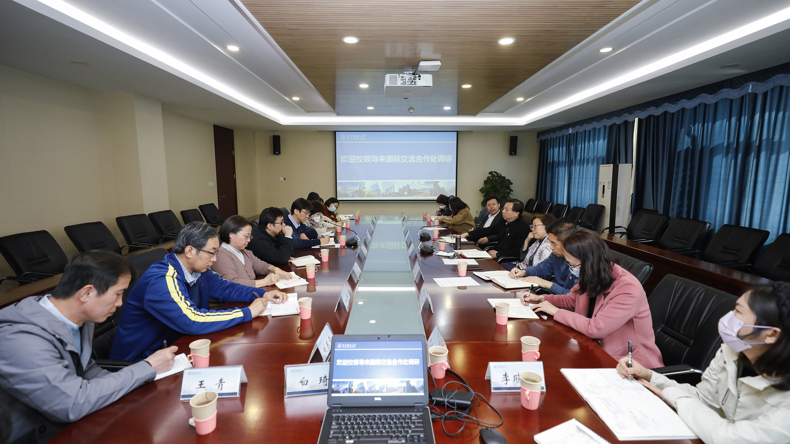 郭福听取了学校国际交流与合作工作情况的汇报,并就学生出国(境)项目、中外合作办学、孔子学院(课堂)以及来华留学生的招生、管理、培养等方面同与会人员进行了交流。