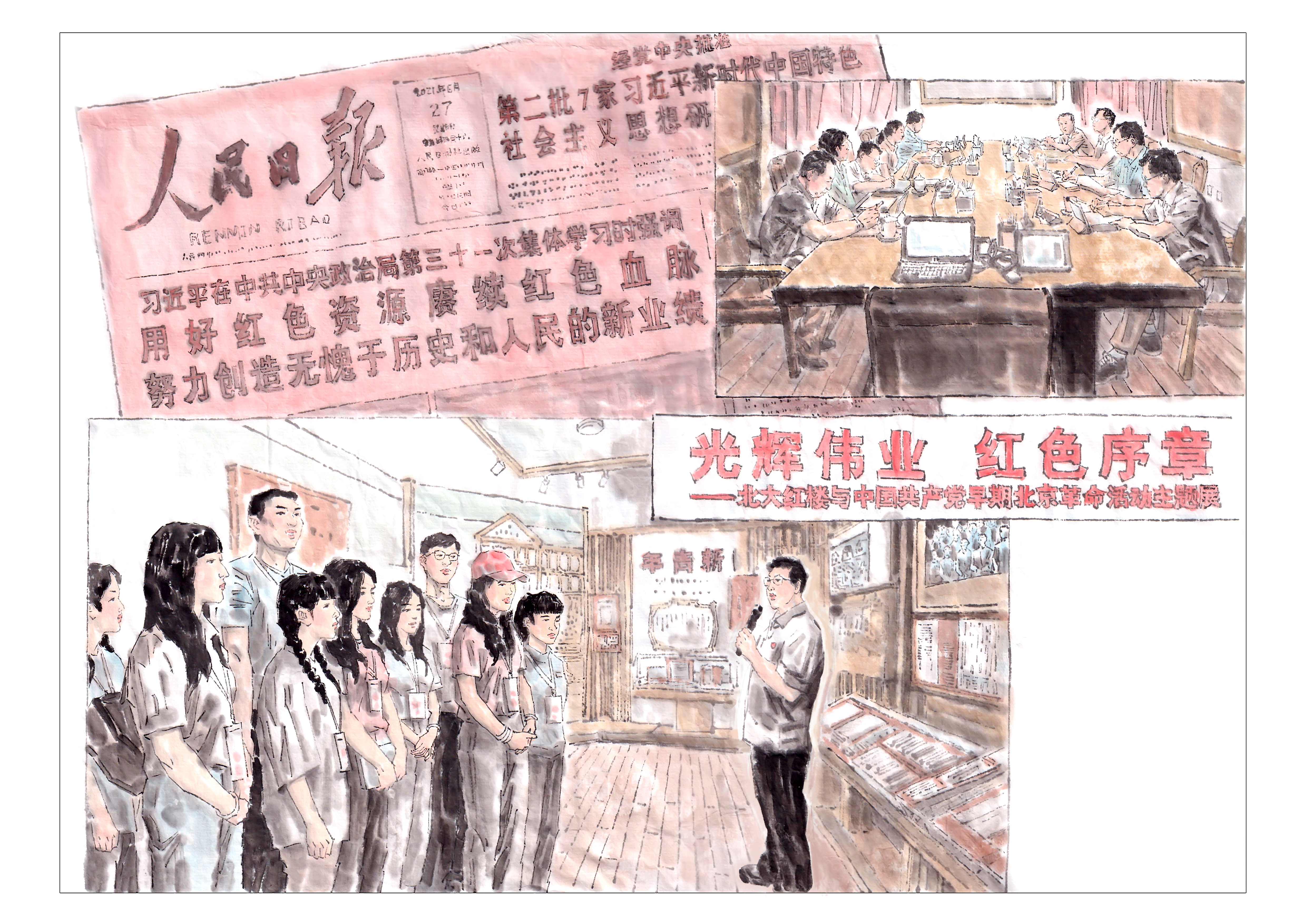 红楼见证百年党史。2021年6月25日,习近平总书记带领中共中央政治局同志到北大红楼参观了“光辉伟业红色序章——北大红楼与中国共产党早期北京革命活动主题展”。北京联合大学党委深入学习习近平总书记的讲话精神,制定工作方案,于7月7日组织大一新生沿着总书记的足迹,在红楼开展了北京红色教育资源融入思政课实践教学。同学们与革命先辈跨越时空“对话”,接受了精神洗礼,坚定了信仰信念。