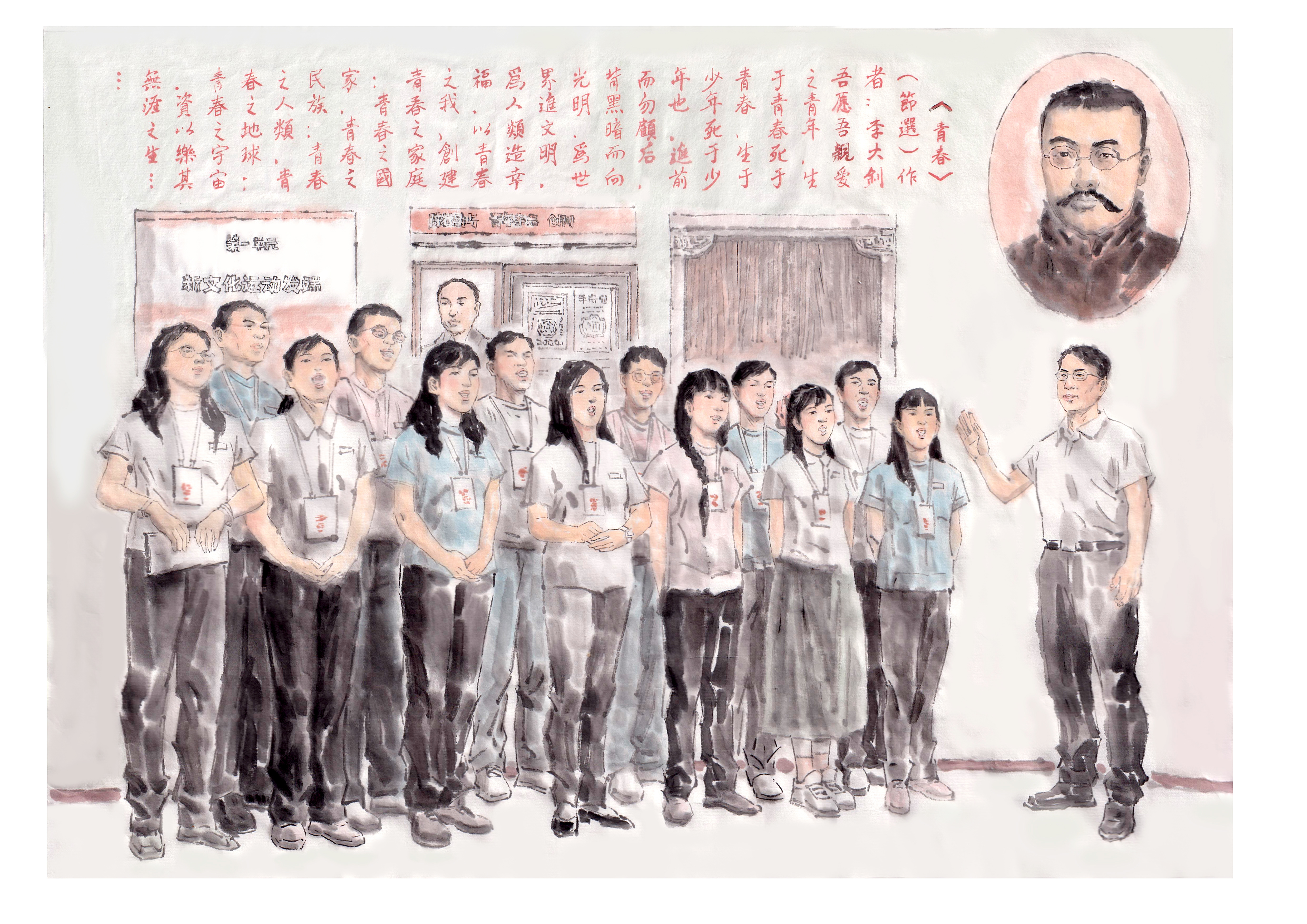 同学们驻足于李大钊的《青春》前,心潮澎湃地齐声朗诵:“……以青春之我,创建青春之家庭,青春之国家,青春之民族……”鲜活的现场教学使同学们增进了对中国共产党、对国家和中国特色社会主义的思想认同和理论认同。这样的思政课实现了在螺旋式上升中对学生们知识传授和价值引领的统一。