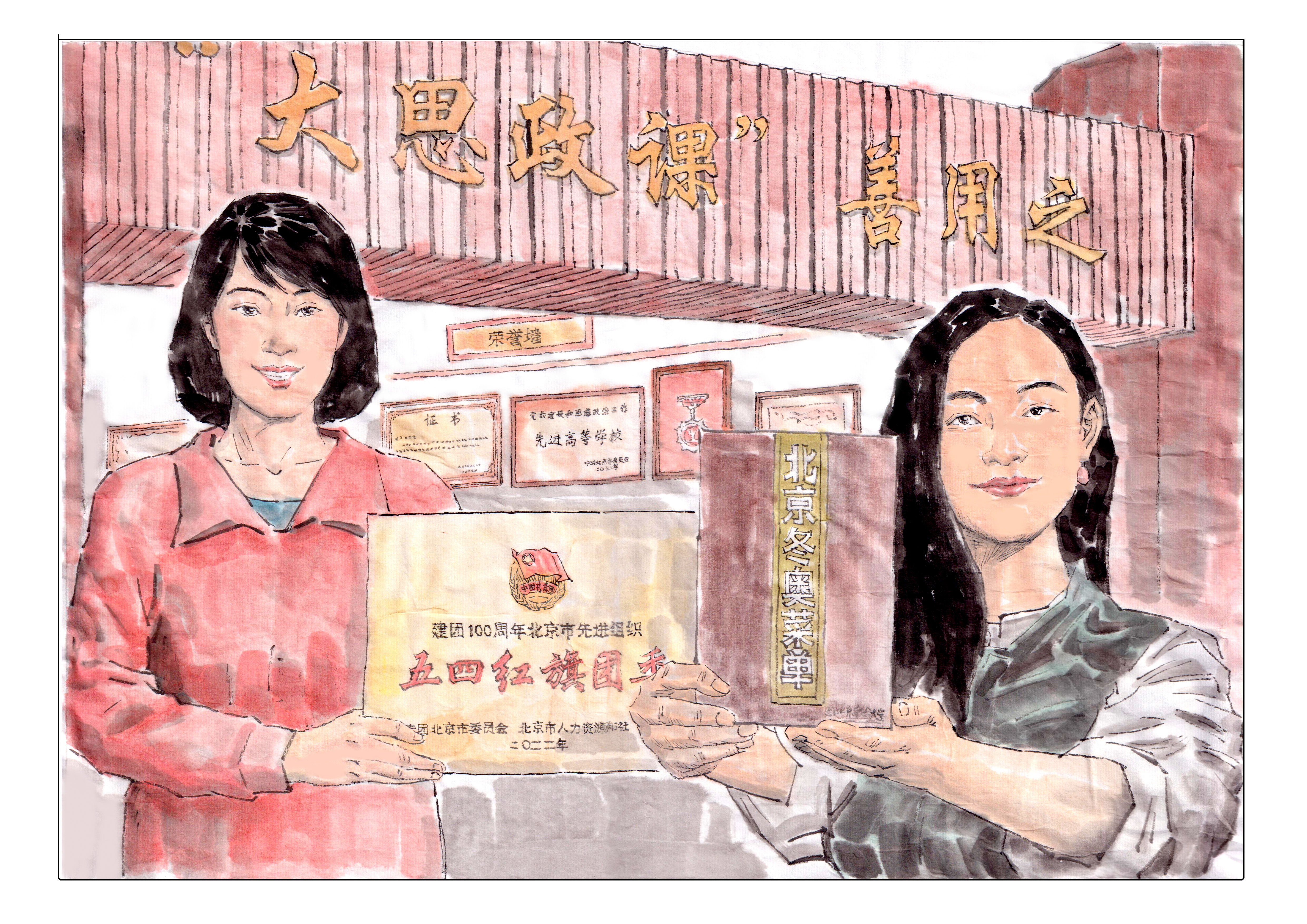 东风劲吹,春潮涌动。两年来,学校持续深入“大思政课”理念研究和实践探索,建立“大思政课”教学实践基地、成立“大思政课”研究中心、举办“‘大思政课’善用之”展览、召开“大思政课”建设推进会,与人民网文华在线展开框架性合作并在该平台上线全国首个“大思政课”专题网站。广大师生将北大 “红楼”、天安门广场、香山革命纪念馆等作为社会“大课堂”,以服务新时代首都发展、北京冬奥冬残奥、疫情防控等为“大思政课”,构建思政课、课程思政、日常思想政治工作同社会现实融会贯通的育人路径,推动“大思政课”的内容、载体和形式创新,不断提升思想政治教育的亲和力和针对性。丰富的实践孕育了丰硕的理论成果,《以提升人才培养能力为导向的课程思政教育教学探索与实践》荣评北京市教育教学成果一等奖,《用好北京红色资源 上好“红色基因、北京味道”的“大思政课”》入选《2021年北京高校党建和思想政治工作经验做法汇编》……《光明日报》《前线》《学习时报》《现代教育报》等纷纷报道。党的二十大推动高校“大思政课”建设进入新阶段新征程。学校将党的二十大精神融入立德树人“大思政”格局。把党的创新理论最新成果融入“大思政课”人才培养体系,进一步丰富“五育并举”育人体系和“高水平人才培养体系”的内涵,又通过善用“大思政课”,推动党的二十大精神入脑入心。