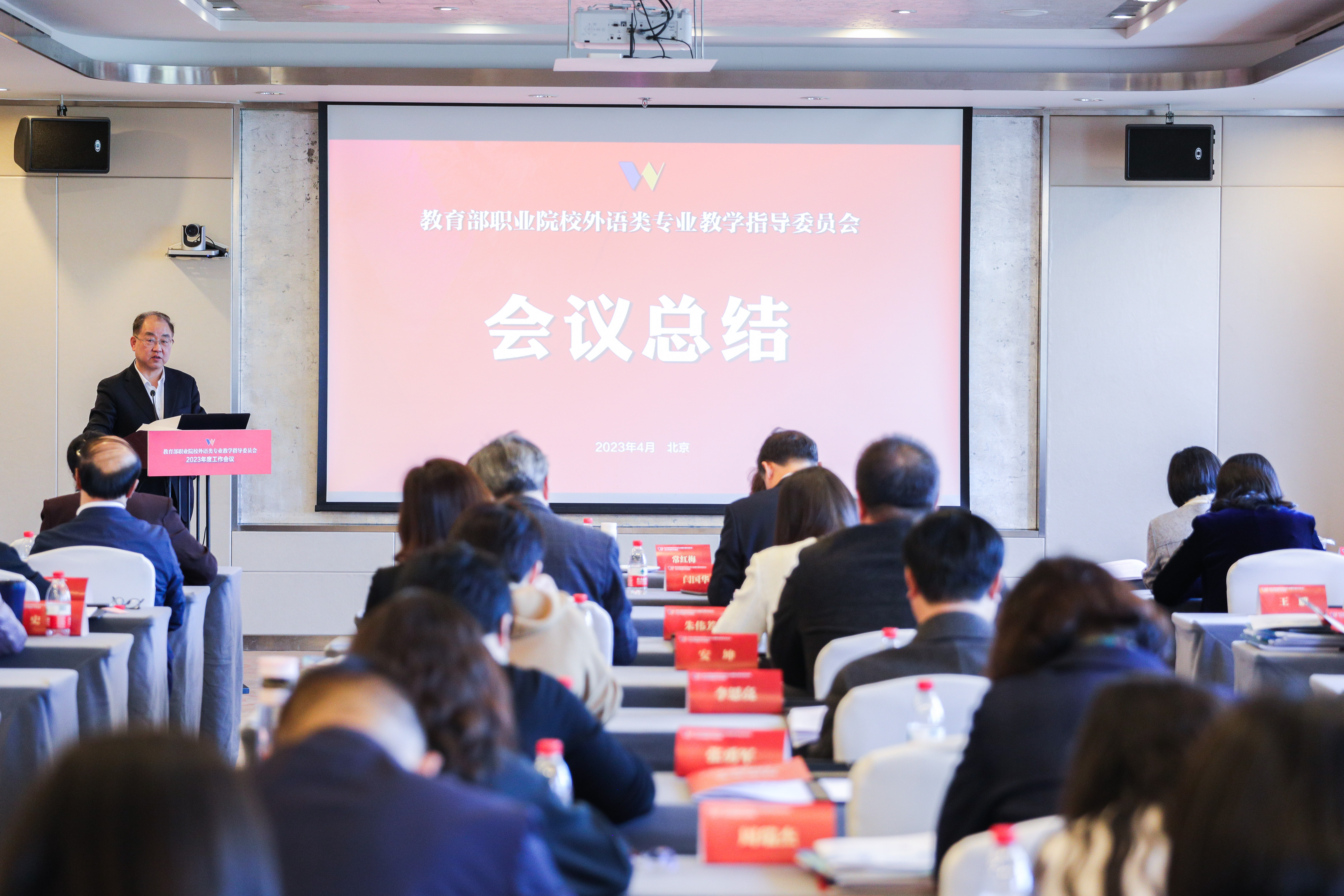 4月7至9日,教育部职业院校外语类专业教学指导委员会(以下简称“外语教指委”)在北京联合大学召开了2023年度工作会议,会议深入学习宣传贯彻党的二十大精神和习近平总书记关于职业教育的重要指示,落实2023年全国教育工作会议重点工作部署,推动职业教育外语教学高质量发展。作为外语教指委秘书处单位,北京联大承办了此次会议。校党委书记楚国清,副校长、外语教指委常务副主任兼秘书长常红梅出席。教育部职成司、教指委主任委员江波、北京市教委职成处、外语教学与研究出版社相关负责人,我校外语部及相关单位负责人参加会议。
