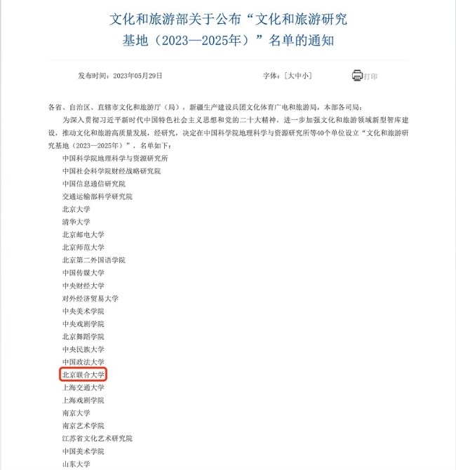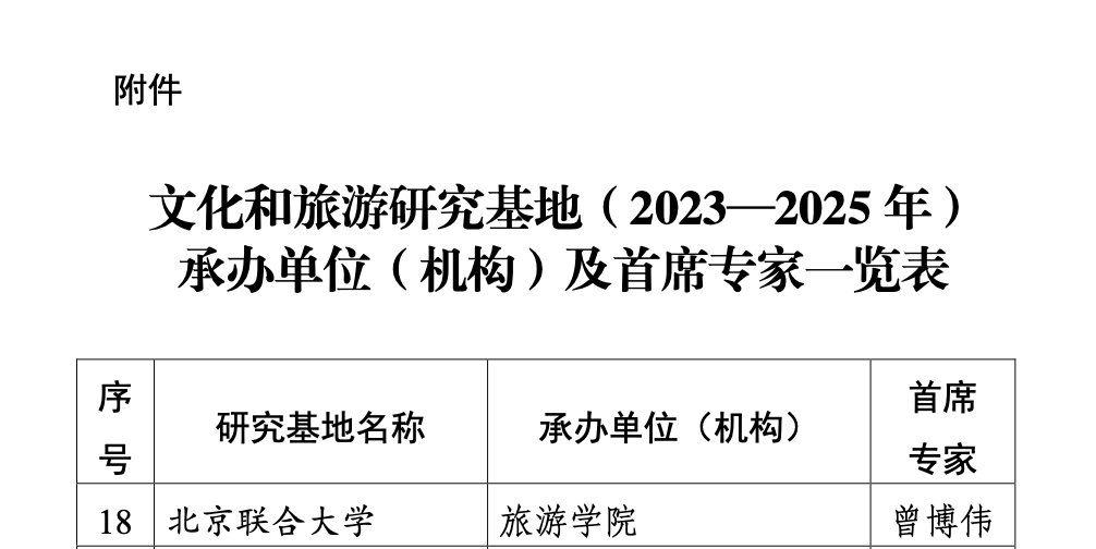 5月29日,为进一步加强文化和旅游领域新型智库建设,推动文化和旅游高质量发展,文化和旅游部决定在40家单位设立“文化和旅游研究基地(2023—2025年)”。北京联合大学位列其中,旅游学院教授曾博伟担任首席专家。