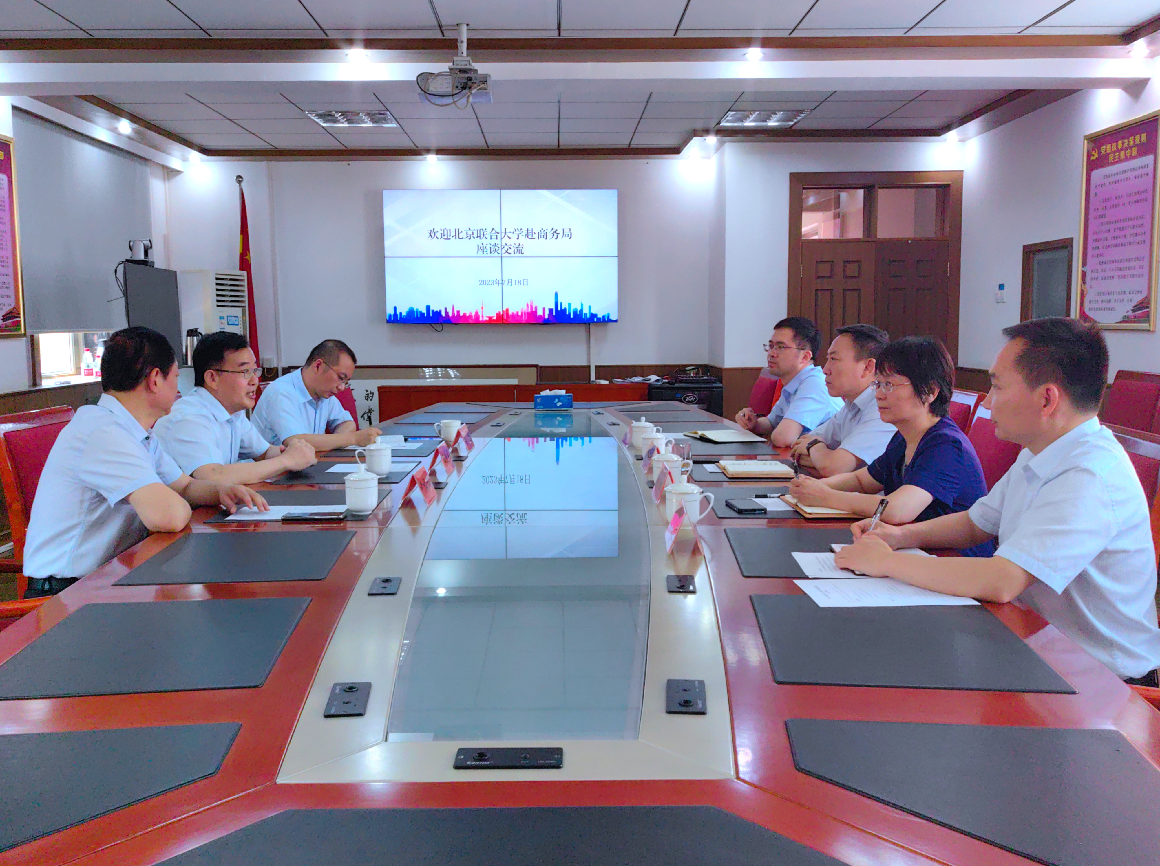 昌平区商务局局长李俊杰、副局长宋红、韦江热情接待了我校一行。李俊杰介绍了昌平区和商务局的发展情况,充分肯定了刘立国同志工作态度和工作表现,并表示今后在“两区”和融合消费示范区建设中加强与我校的深度交流合作。