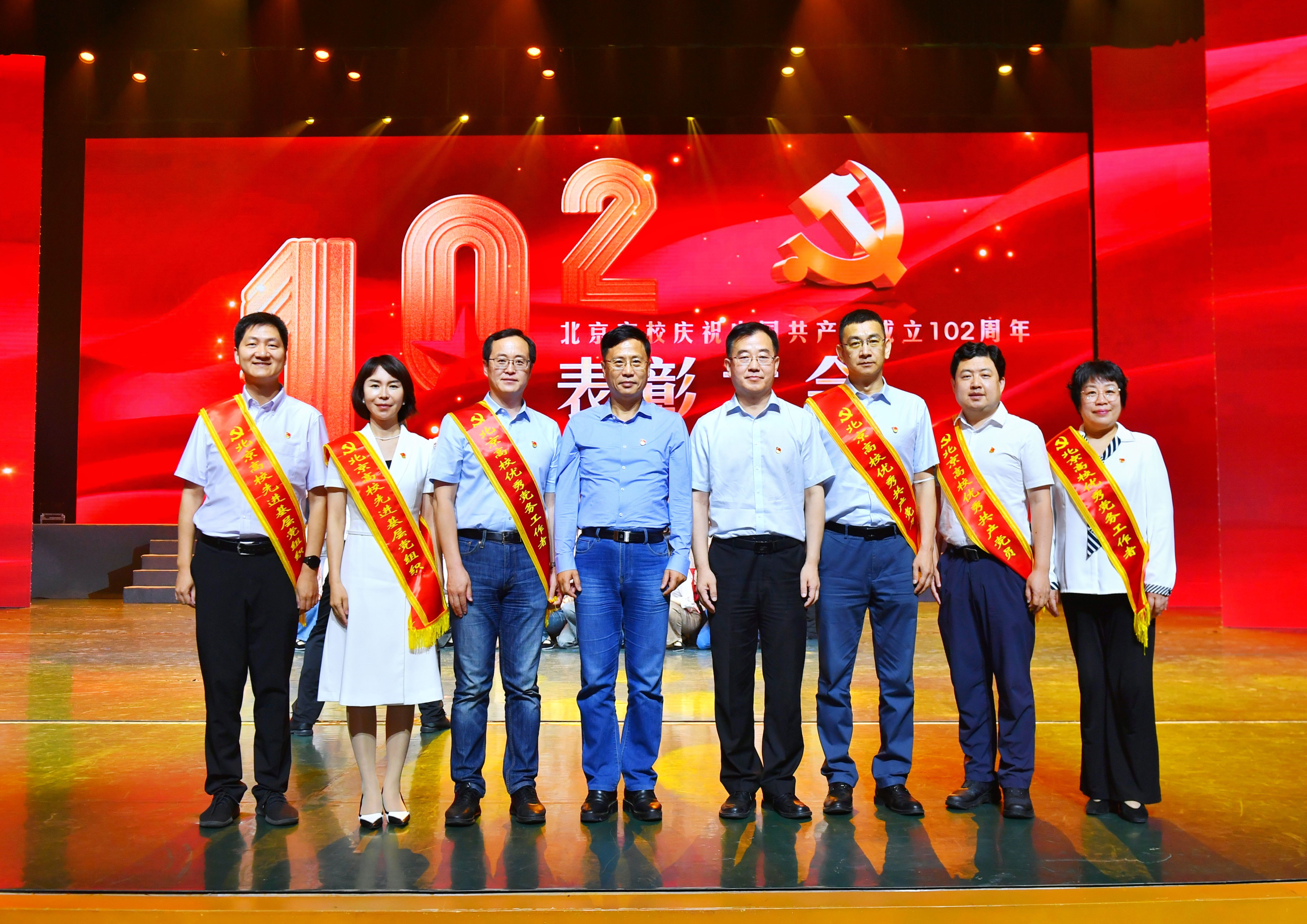 6月30日下午,北京市委教育工委召开北京高校庆祝中国共产党成立102周年表彰大会,隆重表彰北京高校优秀共产党员、优秀党务工作者和先进基层党组织。校党委书记楚国清、党委副书记王爱军与我校6名受表彰的个人、基层党组织代表参加表彰大会。