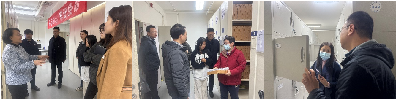 座谈前,甘长来一行还参观了校史馆、档案事业巡礼展览及档案库房。