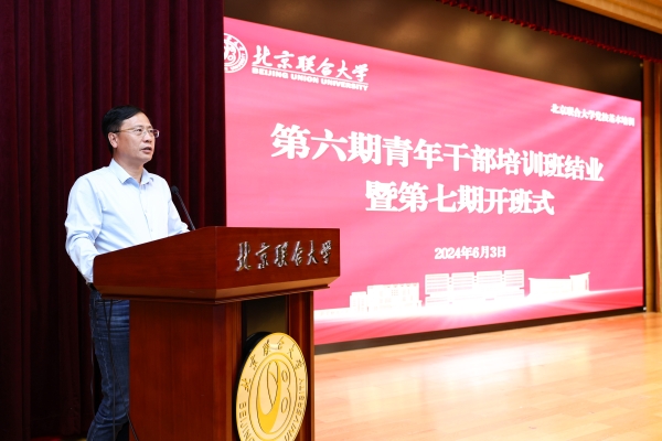 6月3日,学校举办第六期青年干部培训班结业式暨第七期开班式。校党委书记楚国清出席并讲话,党委副书记、校长雷兴山,党委副书记倪赛力,副校长张萌萌、鲍新中出席会议。会议由校党委常委、统战部部长、组织部副部长(主持工作)王文杰主持。