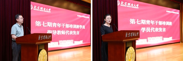 第七期青年干部培训班学员指导教师代表、应用科技学院院长张峰,学员代表、师范学院教师李小贝分别作了表态发言。第六期学员进行了结业测试。