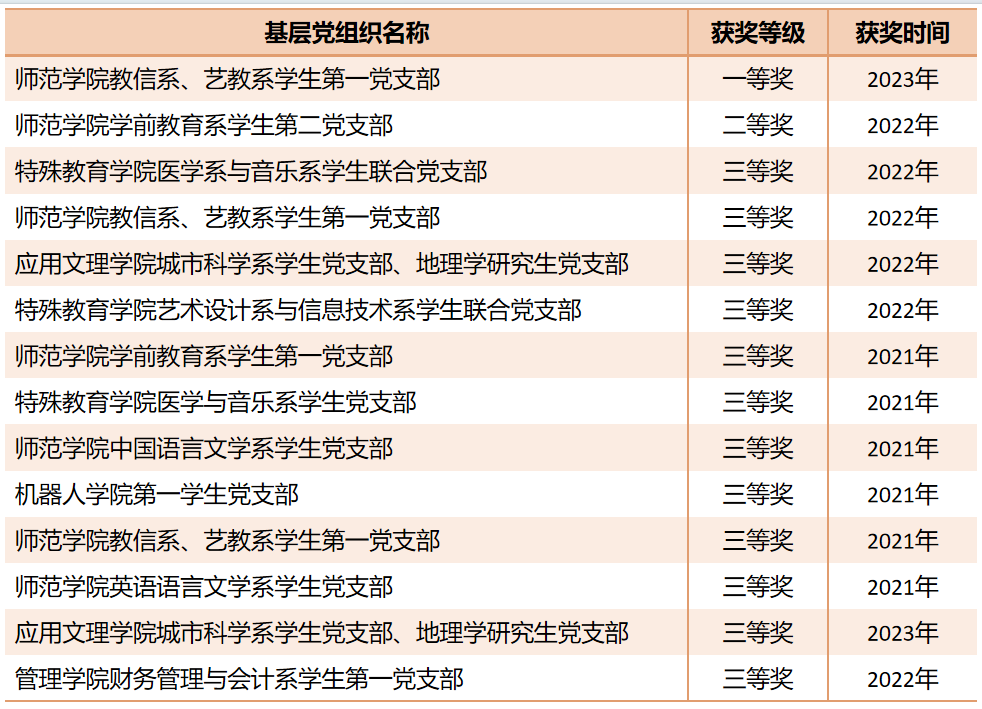 近三年来,共计获评全国党建工作标杆院系(含培育创建单位)2个,全国党建工作样板支部(含培育创建单位)9个,数量位居北京市属高校首位。2024年实现全国高校“百个研究生样板党支部”历史性突破。