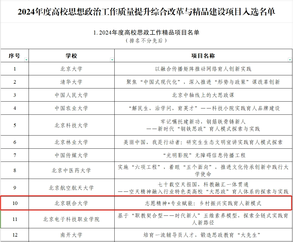 《志愿精神+专业赋能:乡村振兴实践育人新模式》《数字赋能,文物思政——“全生命链条”数字文物育人体系构建》获评教育部思想政治工作司2024年度高校思想政治工作质量提升综合改革与精品建设项目。