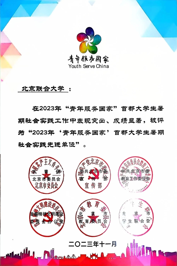 获评“2021年度高校就业最具创新奖”、“2023年‘青年服务国家’首都大学生暑期社会实践先进单位”荣誉称号。连续第14年荣获“北京市征兵工作先进单位”。