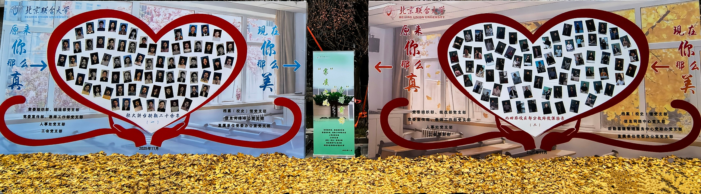 秋染本部,海棠映翠,银杏传情。在这个满载收获与敬意的季节,我校党委组织部、统战部党支部,党委宣传部、教师工作部党支部,人事处党支部,工会党支部,档案(校史)馆党支部,信息网络中心党支部,后勤基建管理服务中心党政办党支部,直属单位党委办公室党支部等8个党支部“支部共建”,以“‘棠’虞之风 ‘杏’好有你”为主题,制作专题展板并记录70多位老教师人事档案中入校时履历表照片和现在授课瞬间,以示向500多位在岗专任授课二十年以上的资深教师们致以最诚挚的敬意。这些老教师自二十年前便扎根联大,始终坚守三尺讲台,以默默无闻的奉献、艰苦卓绝的坚守,让联大成为有温度、有情怀的育人园地。