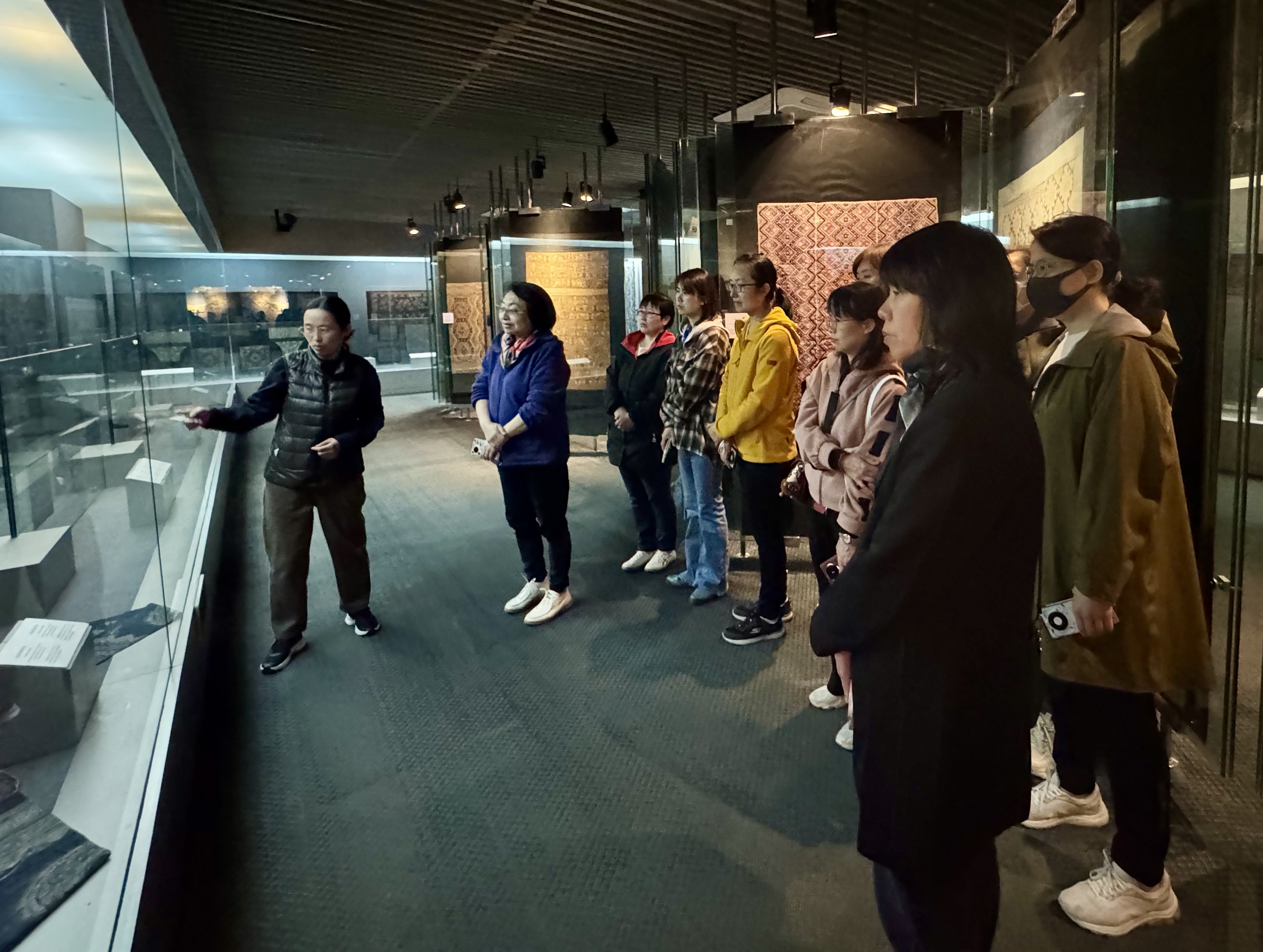 4月8日上午,档案(校史)馆全体教职工走进北京服装学院民族服饰博物馆,在经纬交织的纹样与针脚间,开启“博学”活动第四站。民族服饰博物馆长田辉、副馆长袁宗刚热情接待,博物馆翟文峰老师做精彩讲解。