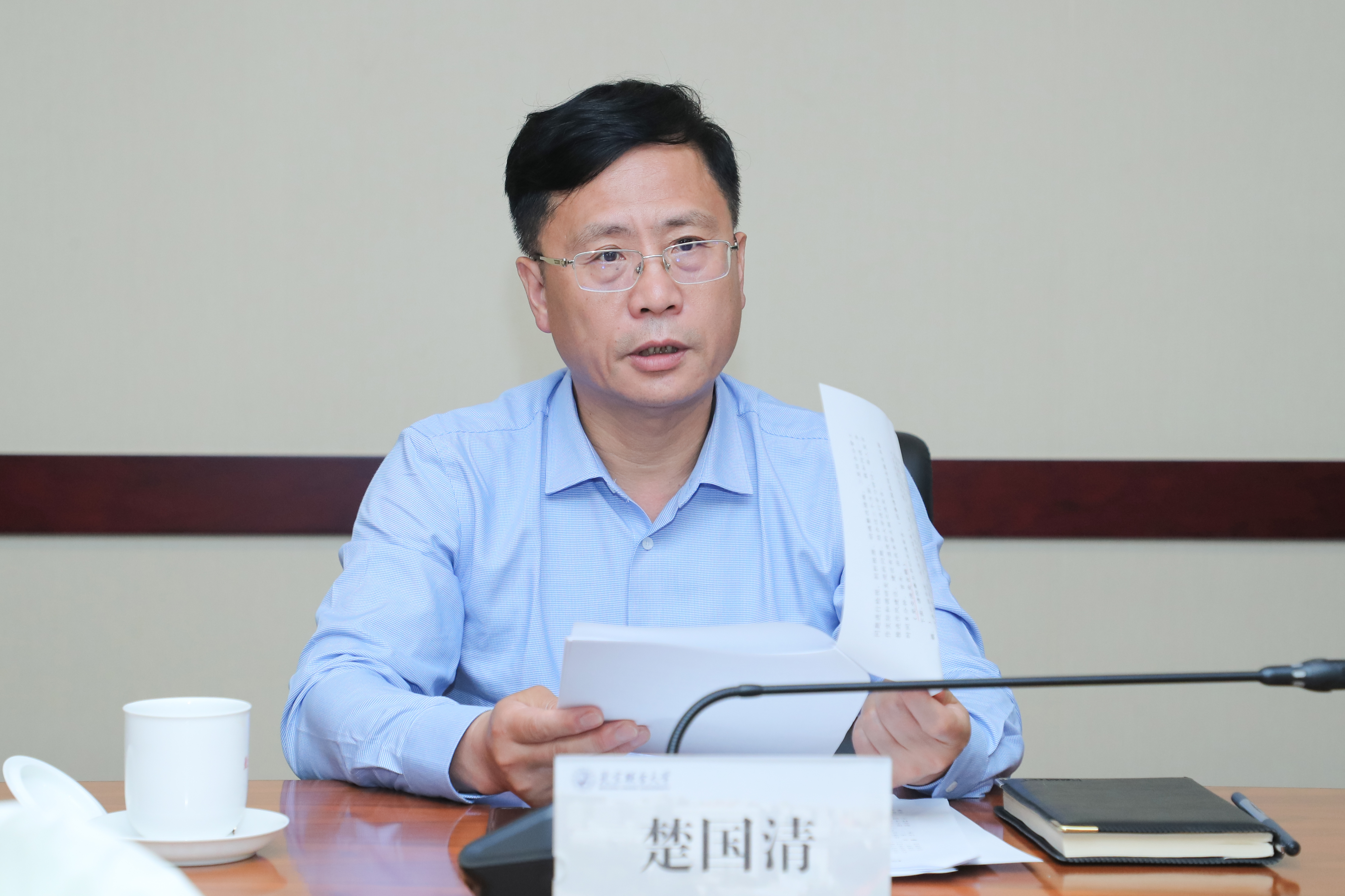 5月20日,校党委常委班子开展深入贯彻中央八项规定精神学习教育集中学习研讨,校党委书记楚国清主持并领学。
